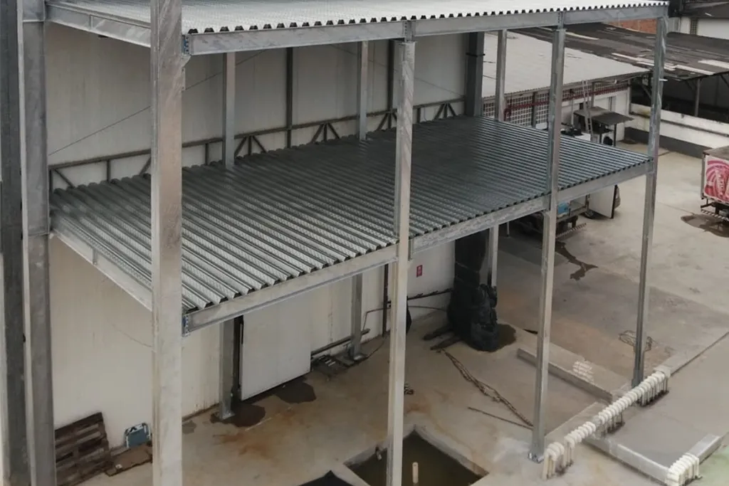 Estrutura metálica: Ferragem metálica e cobertura para câmaras frias.
